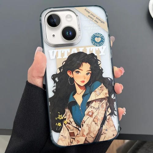 Estuche para teléfono iPhone 13 dibujos animados coloridos grabados chica de moda