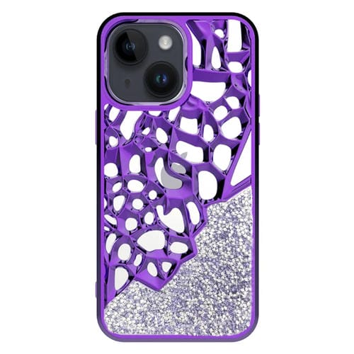 Estuche para Teléfono TPU Galvanizado para iPhone 13 con Disipación de Calor Hueca Estilo Diamante (Púrpura)