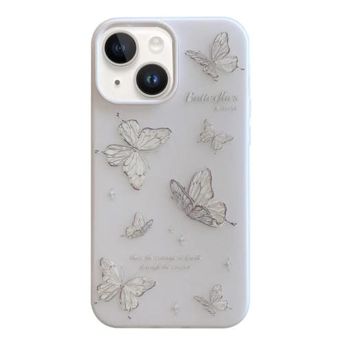 Funda para Teléfono iPhone 13 Jelly 2 En 1 TPU Hybrid (Mariposas Plateadas)
