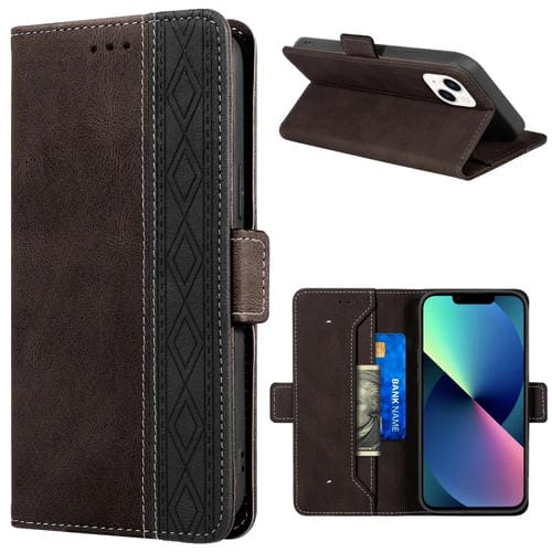 Funda para iPhone 13 Mini Cuero con Costura Magnética Rfid (Café)