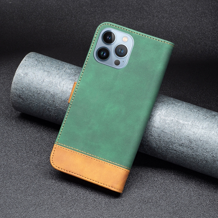 Funda para iPhone 13 Pro Bf11 Color Matching Skin Feel Leather Phone Case (Verde)