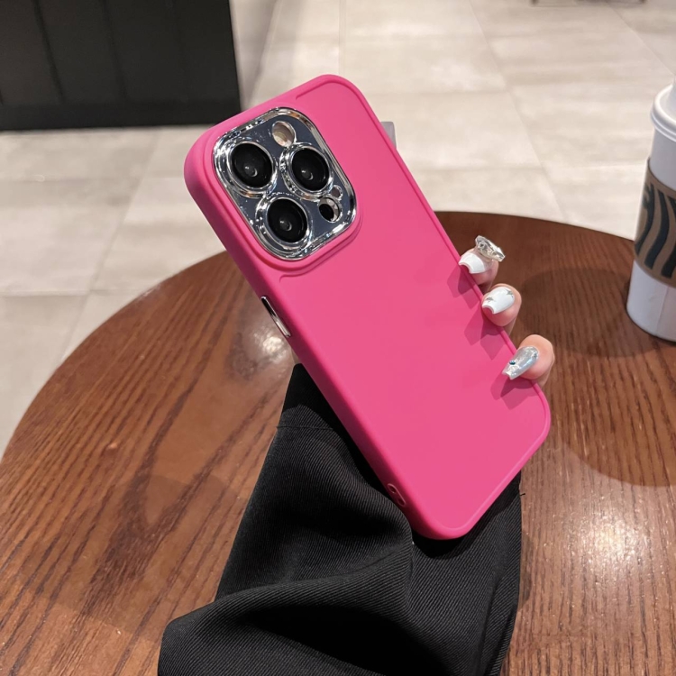 Caja de Teléfono para iPhone 13 Pro con Marco de Lente Galvanizada y Película de Lente (Rosa Roja)