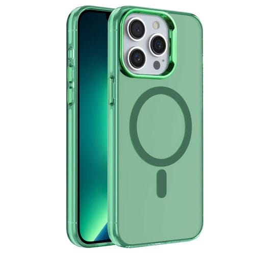 Caja de Teléfono Híbrida TPU Imd Magsafe PC para iPhone 13 Pro (Verde)