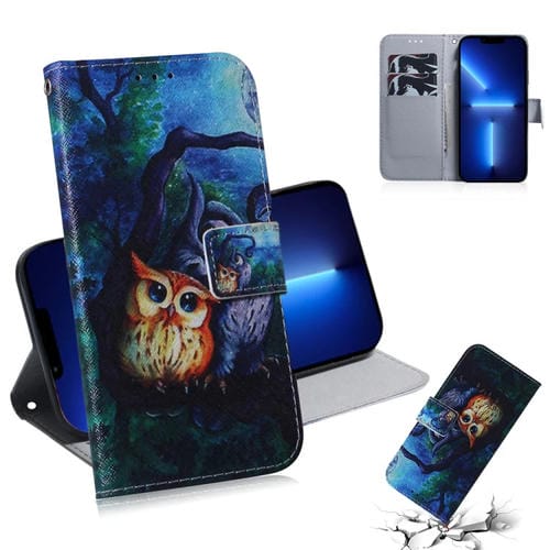 Estuche de Cuero para iPhone 13 Pro con Tapa Horizontal, Soporte, Ranuras para Tarjetas y Billetera (Búho de Pintura al Óleo)