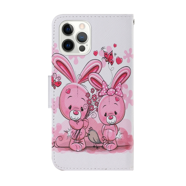 Estuche de Teléfono Cuero iPhone 13 Pro Patrón Dibujo Coloreado (Lindo Conejo)