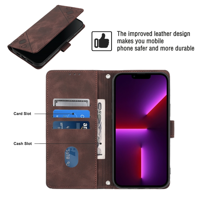 Estuche para Teléfono iPhone 13 Pro Cuero En Relieve Tacto de Piel (Marrón)
