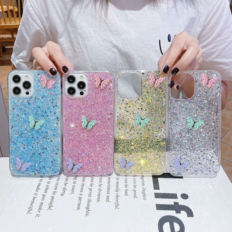 Funda para Teléfono TPU Epoxi iPhone 13 Pro con Lentejuelas Estrelladas y Diamantes de Imitación (Rosa)