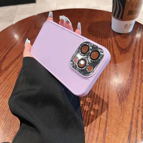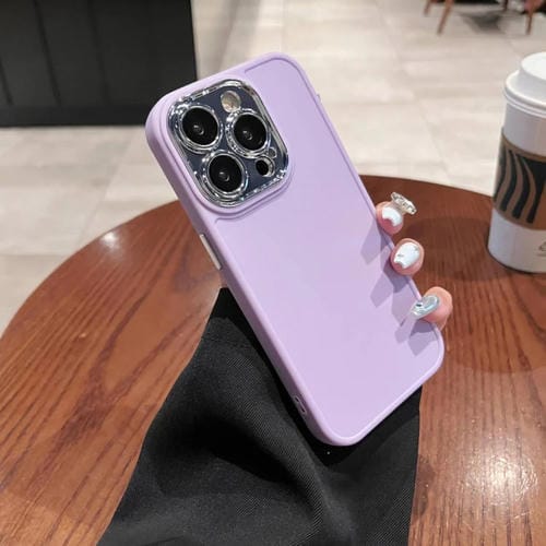 Caja de teléfono para iPhone 13 Pro Max con marco de Lente galvanizada y Película de Lente (Púrpura Claro)