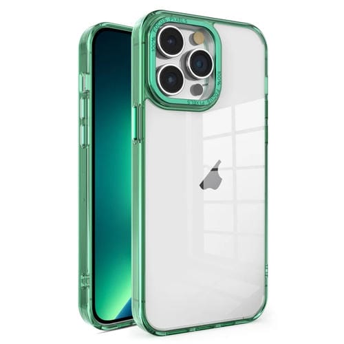 Caja de Teléfono para iPhone 13 Pro Max Crystal TPU + PC con Marco de Lente Galvanizada (Verde)