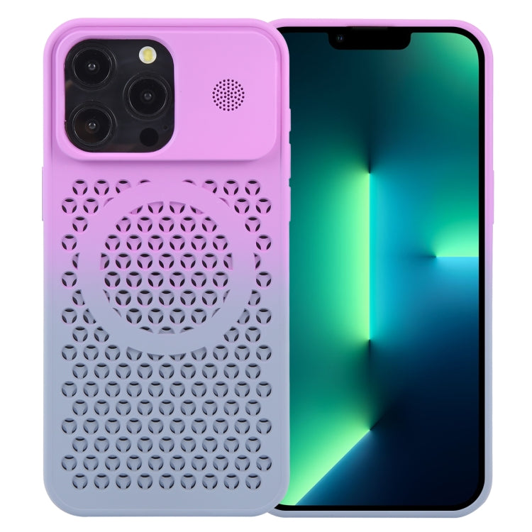 Estuche Magnético para Teléfono iPhone 13 Pro Max con Aromaterapia y Enfriamiento en Forma de Panal (Gris Púrpura)