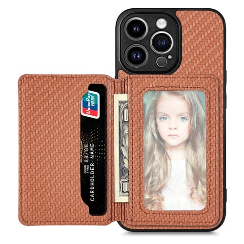 Funda para iPhone 13 Pro Max Fibra de Carbono con Bolsa de Tarjeta Magnética (Marrón)