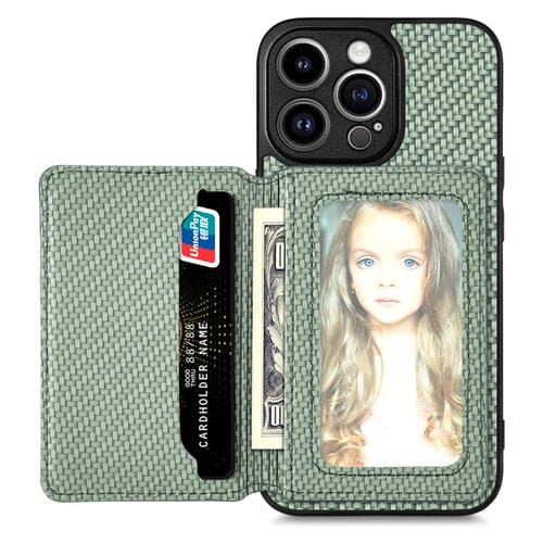 Funda de Teléfono para iPhone 13 Pro Max Bolsa de Tarjeta Magnética Fibra de Carbono (Verde)
