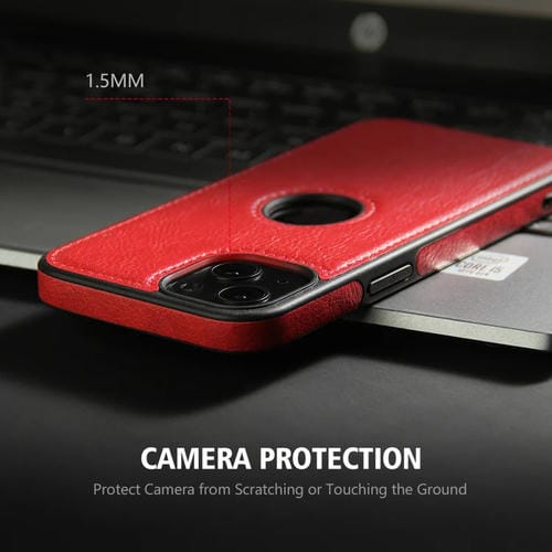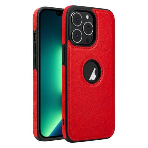 Funda de teléfono iPhone 13 Pro Max con costuras de textura de cuero (Rojo)