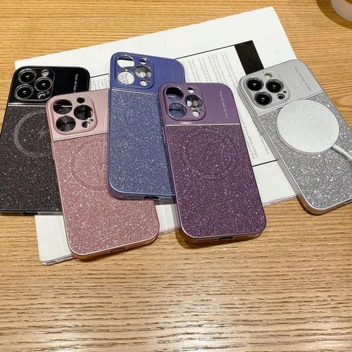 Funda de Teléfono Magsafe para iPhone 13 Pro Max a Prueba de Golpes con Polvo de Brillo Metálico Magnético (Púrpura)
