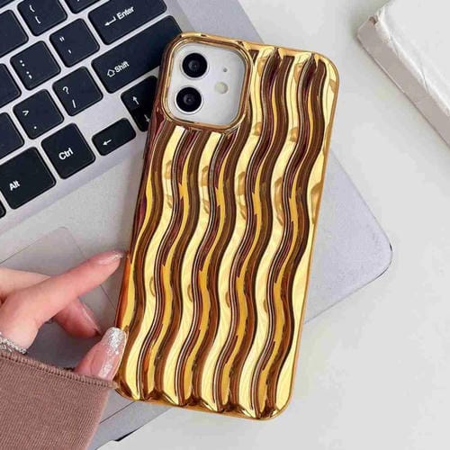 Funda para iPhone 13 Pro Max Plating 3D Water Wave Texture Protección (Oro)
