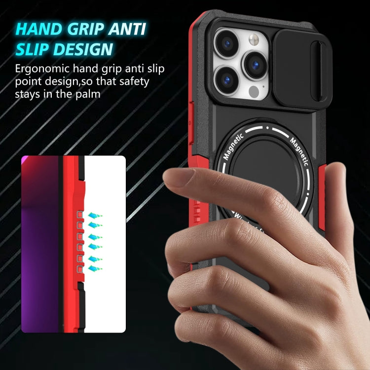 Funda para Teléfono iPhone 13 Pro Sliding Camshield Magsafe Holder TPU Hybrid (Negro Rojo)