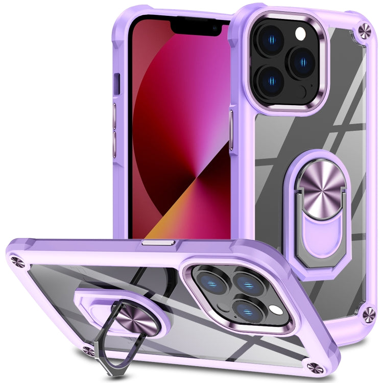 Estuche para Teléfono iPhone 13 Pro TPU + PC Protección de Lente con Soporte para Anillo (Púrpura)
