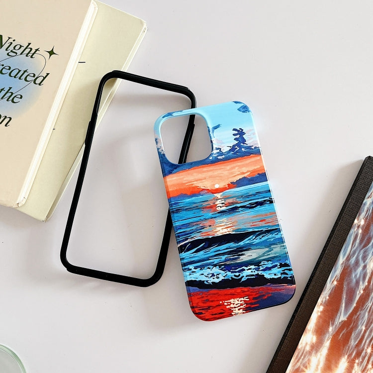 Estuche para teléfono iPhone 14 2 en 1 con patrón de mar y pintura al óleo desmontable (Amarillo Rosa)