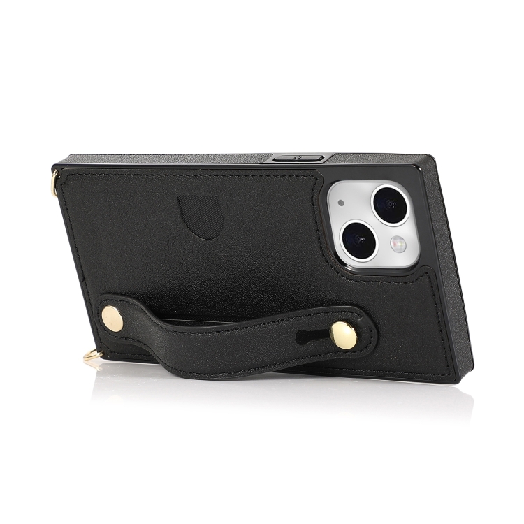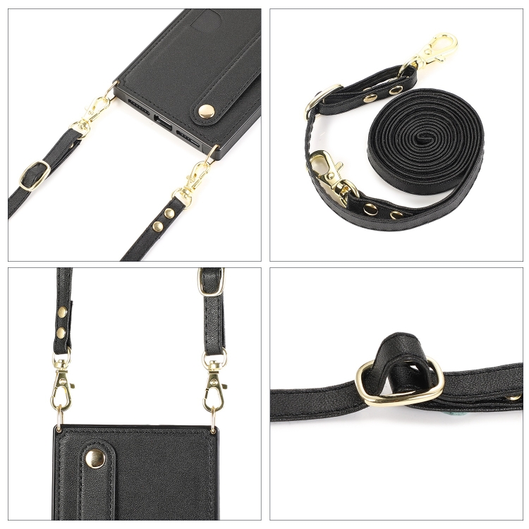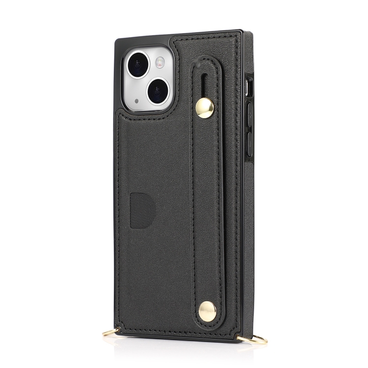 Funda para Teléfono iPhone 14 Crossbody Correa para Muñeca con Tarjetero (Negro)