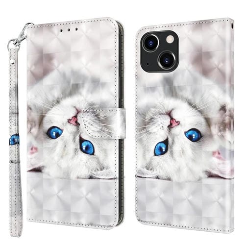 Estuche para teléfono iPhone 14 cuero pintado 3D gato blanco reflejo