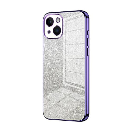 Estuche para teléfono iPhone 14 Galvanizado con Polvo de Brillo Degradado (Púrpura)