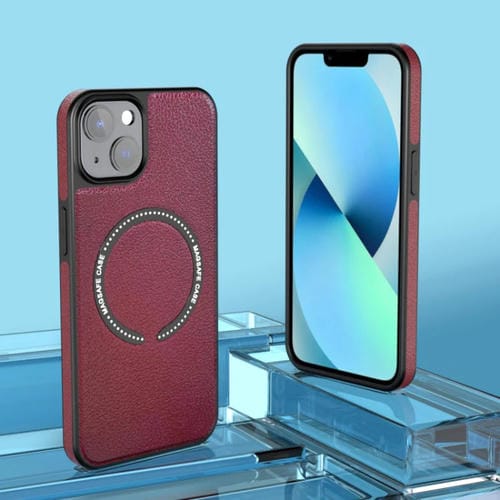 Funda Magnética de Cuero Magsafe para iPhone 14 (Rojo Vino)