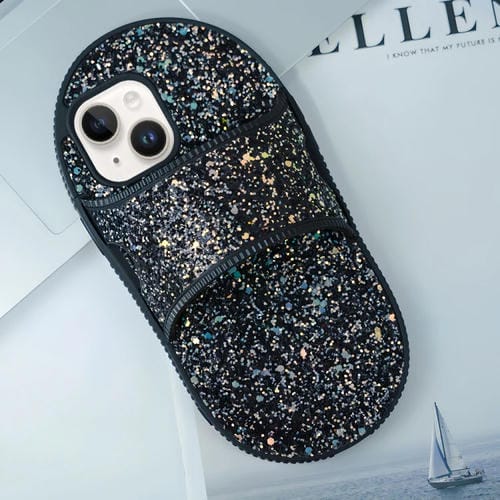 Funda para Teléfono iPhone 14 TPU a Prueba de Golpes Diseño Zapatilla con Purpurina (Negro)