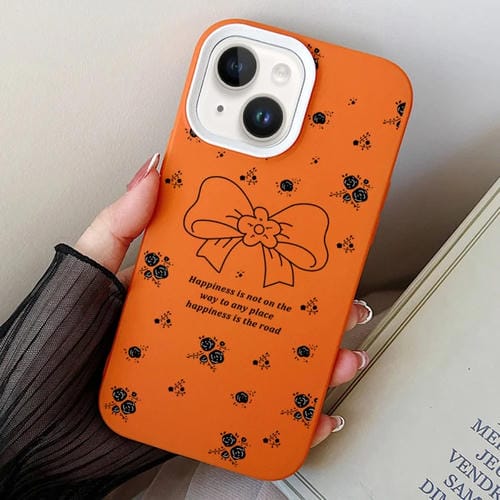 Funda para Teléfono iPhone 14 Híbrida TPU con Lazo Floral PC (Naranja)