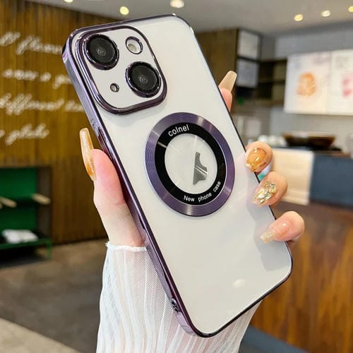 Funda para Teléfono iPhone 14 Magsafe PC Galvanizada Transparente (Púrpura)