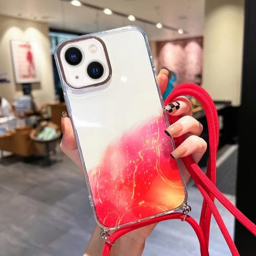 Funda para iPhone 14 Gold Halo Marble Pattern con Cordón (Rojo)