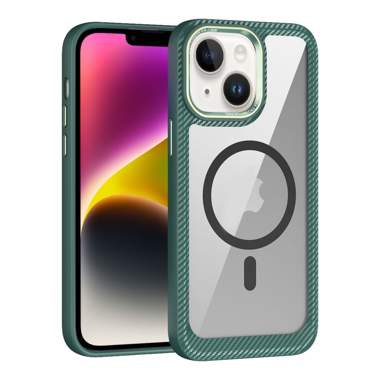 Caja para iPhone 14 Magsafe Fibra de Carbono Panel Trasero Transparente (Verde)