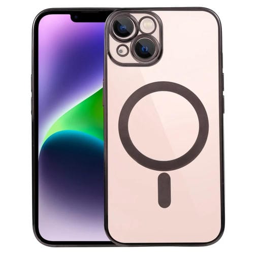 Funda para iPhone 14 Magsafe Galvanoplastia Straight TPU Phone Case (Negro)