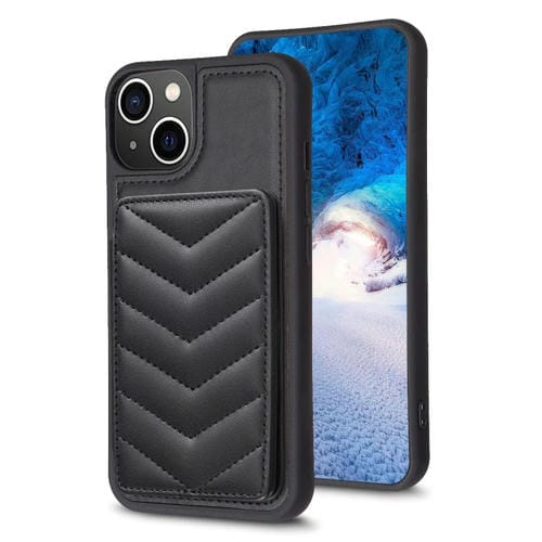Funda para iPhone 14 Plus Bf26 Wave Pattern Porta Tarjetas Bolsa (Negro)