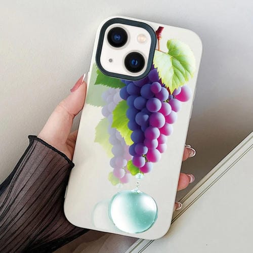 Funda híbrida para iPhone 14 Plus TPU con patrón de uva para PC (Blanco)