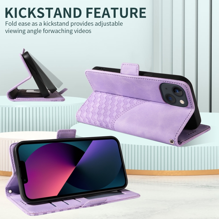 Funda para Teléfono iPhone 14 Plus Cuero Estrellado con Rombos en Relieve (Púrpura)