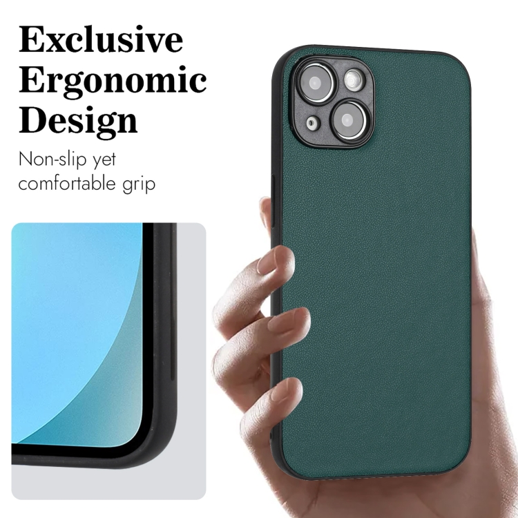 Funda para iPhone 14 Plus R20 con Patrón de Cuero (Verde)