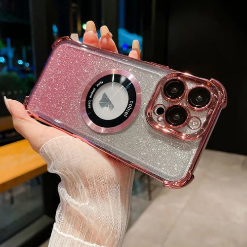 Estuche para Teléfono iPhone 14 Pro Max 6D Magsafe con Armadura de Brillo Degradado y Galvanoplastia (Rosa)