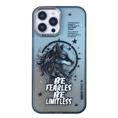 Funda para Teléfono iPhone 14 Pro Max Aurora Series Patrón Pintado (Lobo Negro)