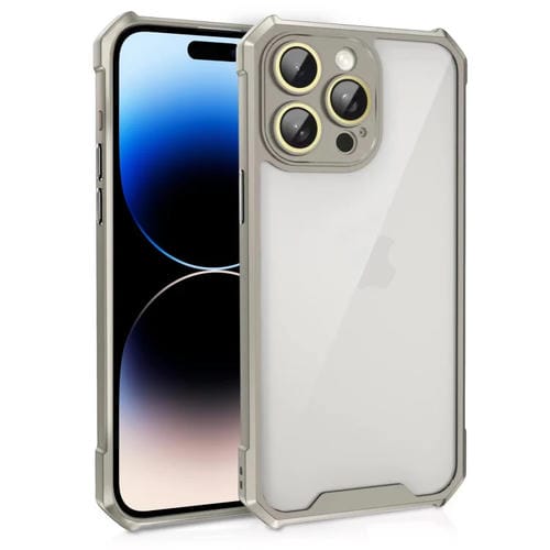 Estuche Acrílico para iPhone 14 Pro Max a Prueba de Golpes con Película de Vidrio para Lentes (Gris)