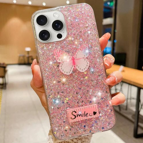 Funda para Teléfono TPU Epoxi para iPhone 14 Pro Max con Diamantes de Imitación y Lentejuelas Estrelladas (Rosa)