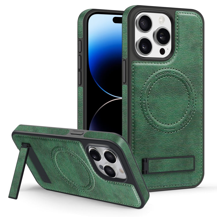 Funda para Teléfono iPhone 14 Pro Max Magsafe PU con Soporte Multifunción (Verde Oscuro)