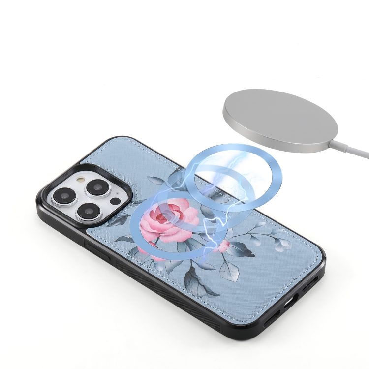 Funda de Cuero Magsafe iPhone 14 Pro Max Billetera Cruzada Multifuncional con Cremallera (Azul)
