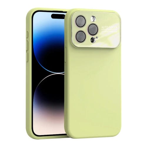 Película de Lente Acrílica + Funda Silicona Líquida para iPhone 14 Pro Max Cobertura Total (Amarillo Leche)