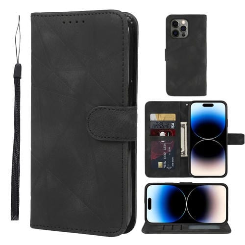 Funda para iPhone 14 Pro Skin Feel de Cuero con Líneas Geométricas (Negro)