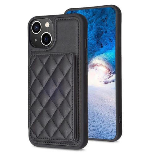 Funda para iPhone 15 Bf25 Square Plaid Card Bag Holder con soporte para tarjetas (Negro)