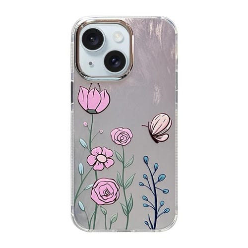 Funda para Teléfono iPhone 15 Cooling Flash Feather TPU + PC (Flores de Mariposa)