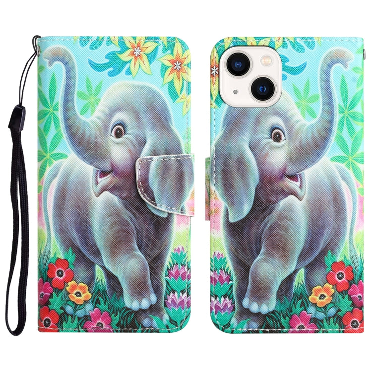 Estuche de Teléfono para iPhone 15 Cuero con Dibujo Coloreado (Elefante)