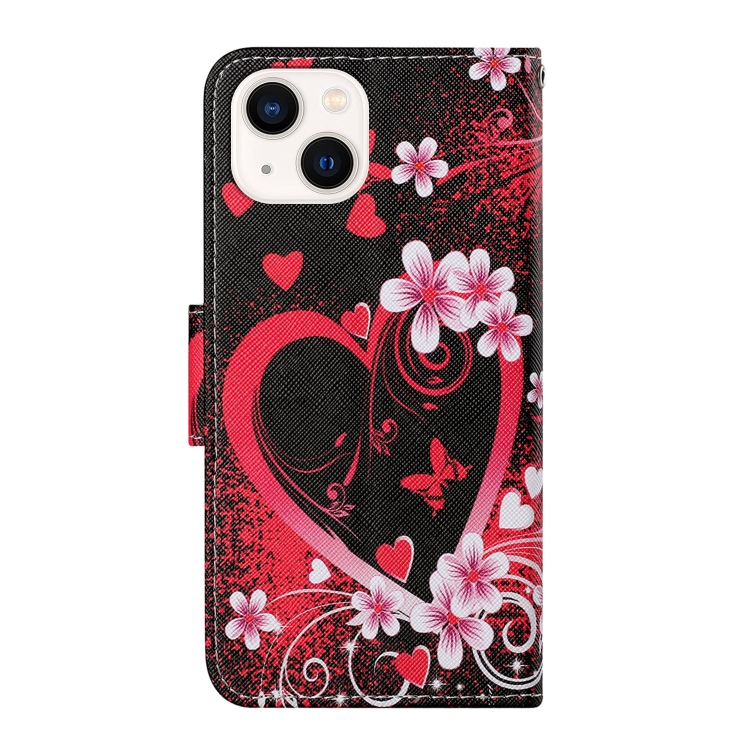 Estuche para teléfono iPhone 15 Cuero con tapa dibujo coloreado 3D (Corazón Rojo)