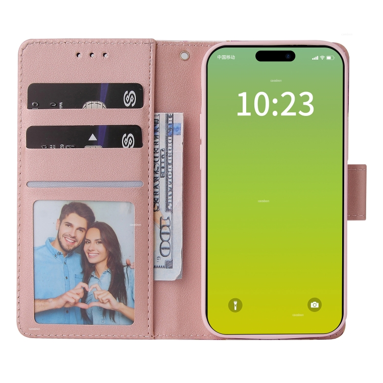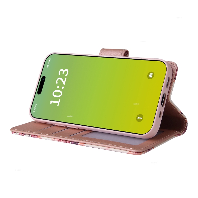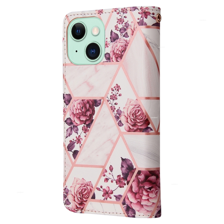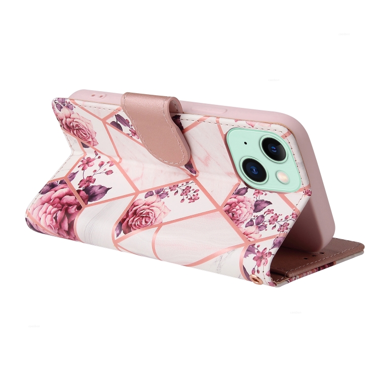 Funda para iPhone 15 Cuero con Costuras Bronceadoras Mármol (Oro Rosa)