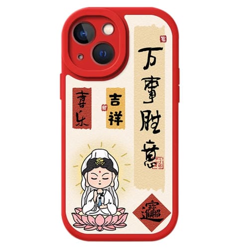 Funda para Teléfono iPhone 15 Cobertura Total Diseño Año Nuevo Textura Cuero de Cordero (Bodhisattva)